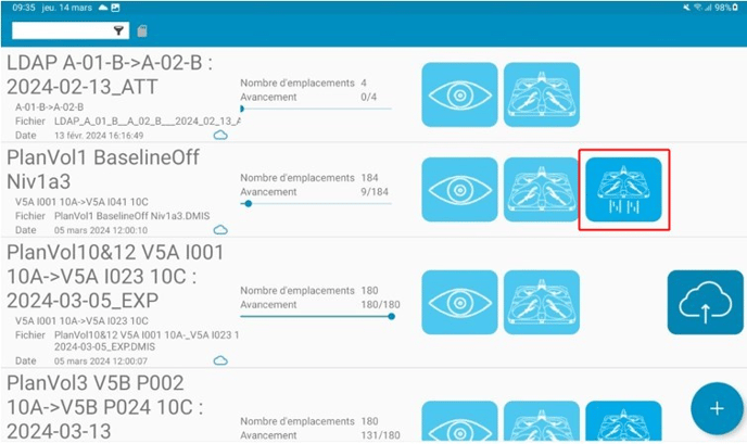 Les étapes s’enchaînent de la même manière que pour le lancement d’une mission, tout en respectant le mode opérateur précédemment défini (Débutant ou Confirmé).