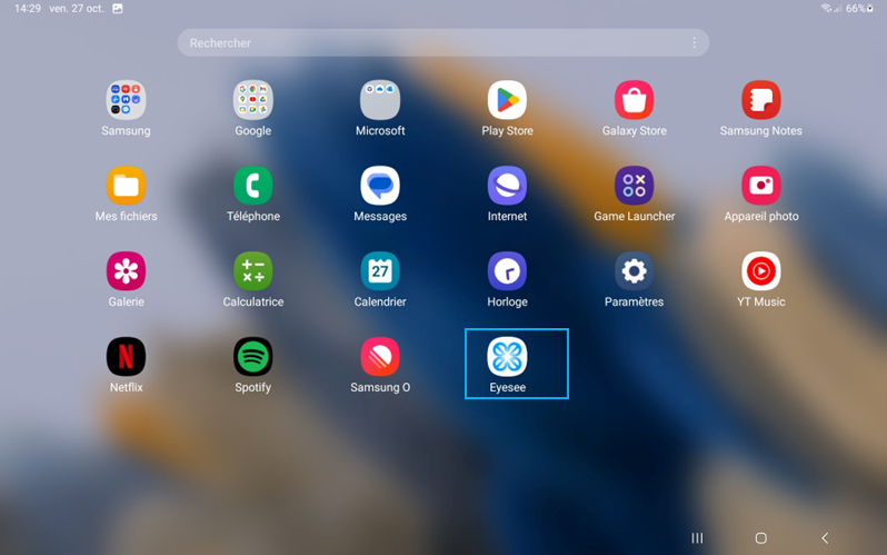 Sur le menu principal des applications de la tablette, repérez l’icône de l’application EYESEE :