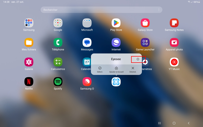 Exercez un appui long sur l’icône EYESEE. Une fenêtre pop-up s'ouvre.