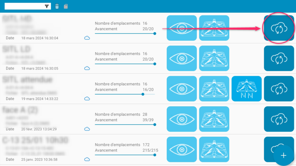 1. Una volta completata la missione, sulla destra dello schermo appare un'icona a forma di nuvola che consente di caricare la missione su EYESEE Cloud.