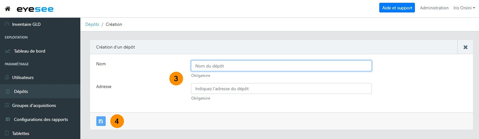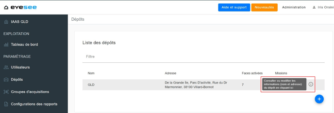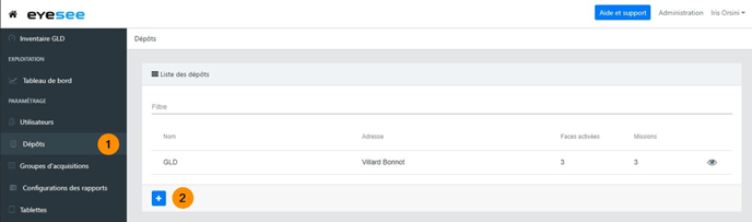 Un magazzino non può essere cancellato se è stato utilizzato: è necessario cancellare ciò che contiene (missioni, facciate, zone, collegamento con un tablet dal menu “Tablet”) prima di poterlo cancellare. Poiché l'eliminazione di un magazzino è definitiva, questo impedisce la cancellazione involontaria di un magazzino che è stato utilizzato.
