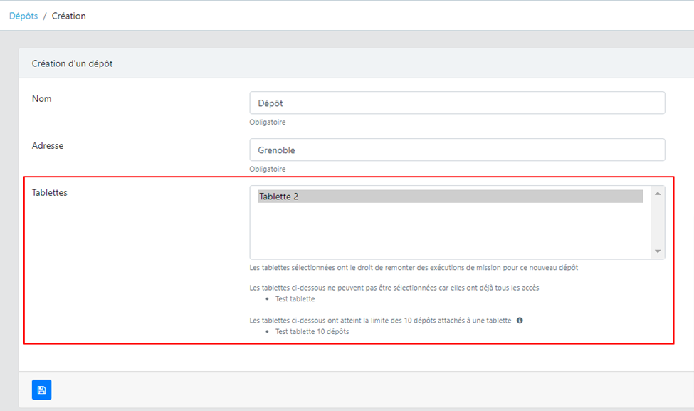 Quando si crea un nuovo magazzino e se nello spazio è già stata creato un tablet, è ora possibile associare il magazzino a uno o più tablet.