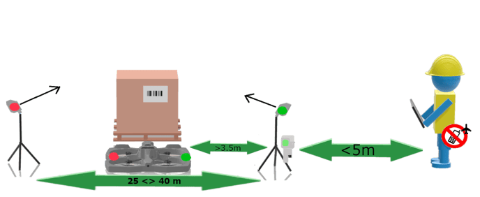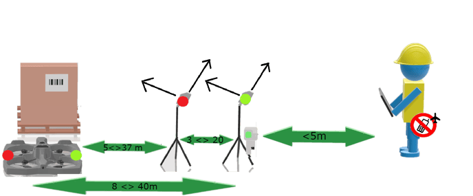 The EYESEE Tags must be positioned at a minimum distance of 5 metres and a maximum distance of 37 metres from the drone.