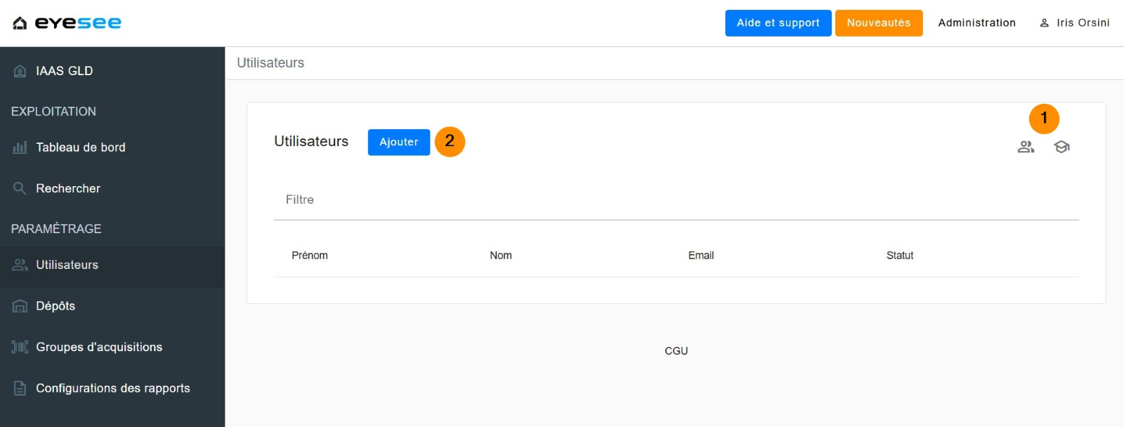 Pour ajouter un utilisateur, après avoir cliqué sur l’icône d’ajout depuis la liste des utilisateurs :
