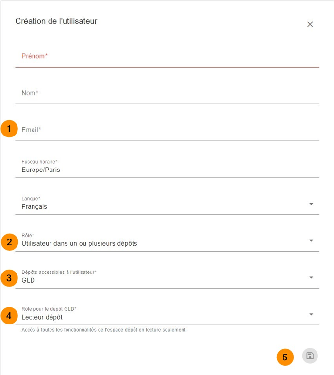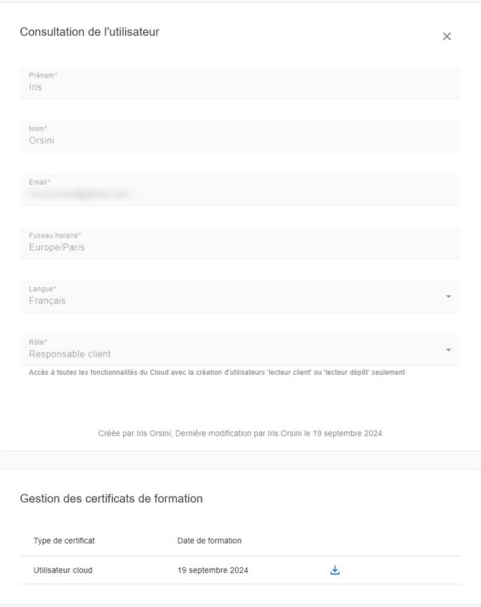 1. Dans l’espace clientSeul le formateur, ayant suivi une formation spécifique, peut créer des utilisateurs avec les rôles Responsable (client ou dépôt) et Opérateur.