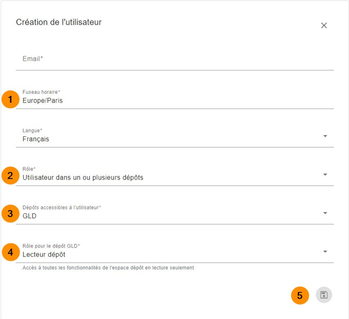 3. En sélectionnant ‘Utilisateur dans un ou plusieurs dépôts’, cochez un ou plusieurs dépôts qui lui seront accessibles.