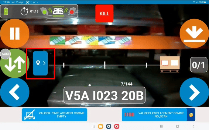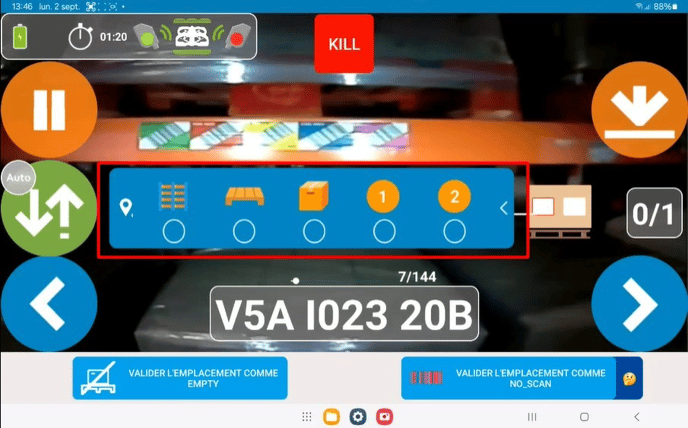 Cela peut être pour : un défaut de structure, une palette endommagée, le contenu endommagé d'une palette, ainsi que deux points d'intérêt supplémentaires 1 et 2.
