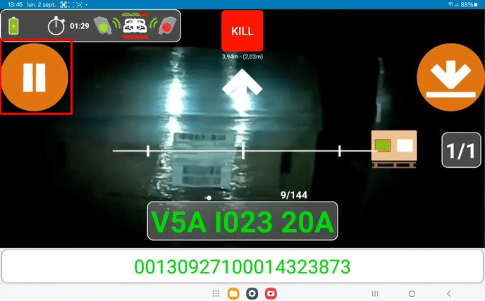 Cliquez sur le bouton "pause". Le bouton s'affiche et vous pouvez ajouter un ou plusieurs points d'intérêt, avant de cliquer sur le bouton 'play' pour reprendre la mission
