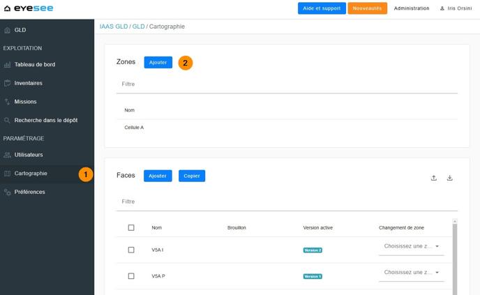 Pour gérer les cartographies par secteur, il est possible de définir des zones : une zone peut correspondre à un magasin, une cellule.