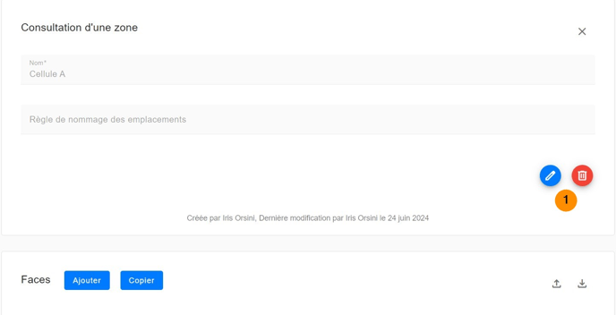 1. Modifier ou supprimer une zone : cliquez sur l’icône correspondante, puis validez.