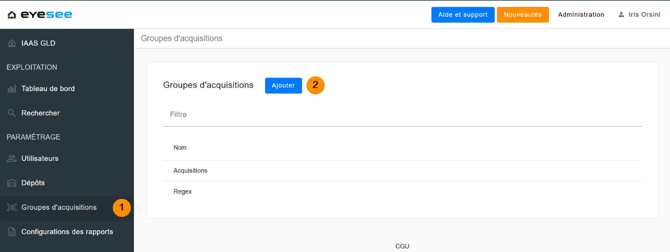 1. Dans le menu à gauche, cliquez sur Groupes d’acquisitions.