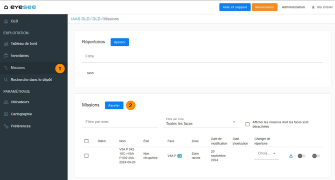 1. Depuis un dépôt, cliquez sur Missions.