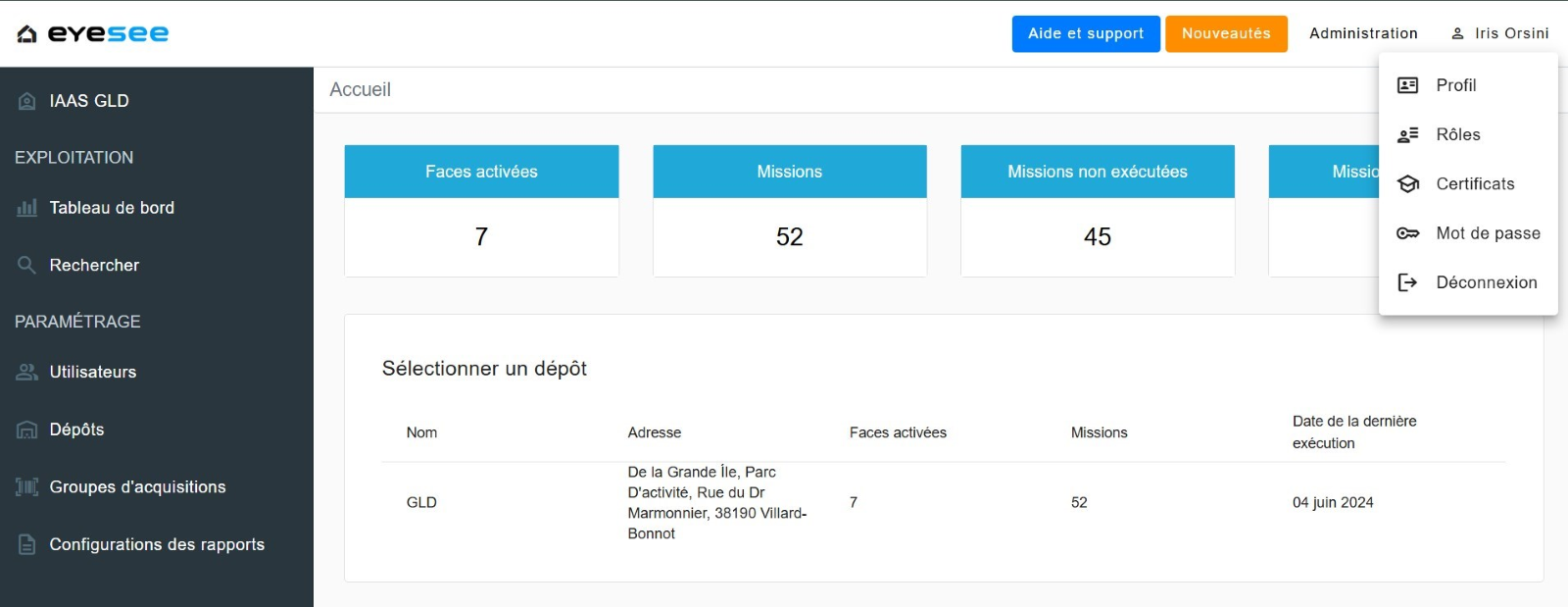 Cliquez sur ‘Nouveautés’ pour consulter toutes les améliorations et changements d’EYESEE Cloud.