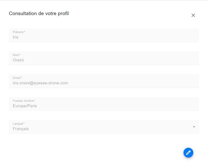 - Vérifiez vos informations en cliquant sur votre nom. Une liste apparaît :