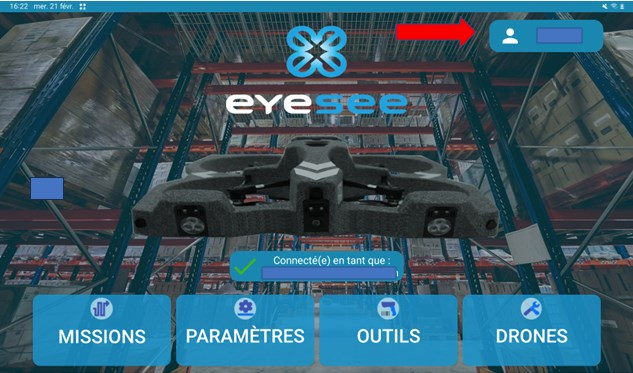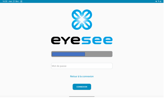 Connectez la tablette à un wifi avec internet, puis utilisez votre identifiant et mot de passe EYESEE Cloud.